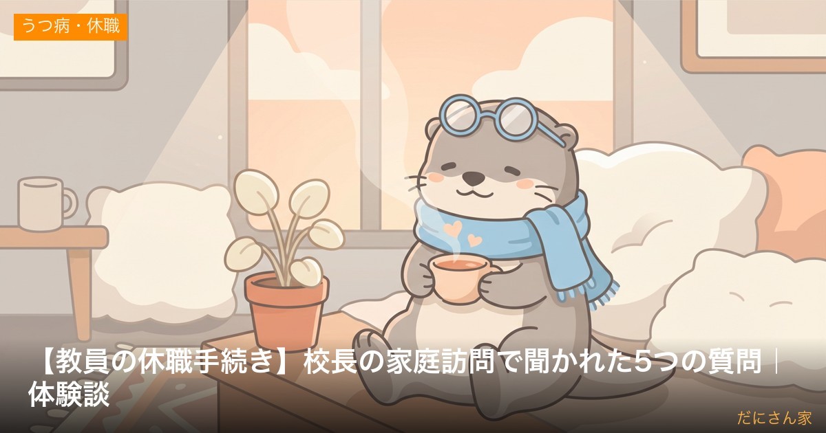 この記事では、教員がうつ病で休職する過程で校長の家庭訪問で実際に聞かれた5つの質問と、正式に休職が決まるまでの流れを、体験ベースで正直に書きます。
